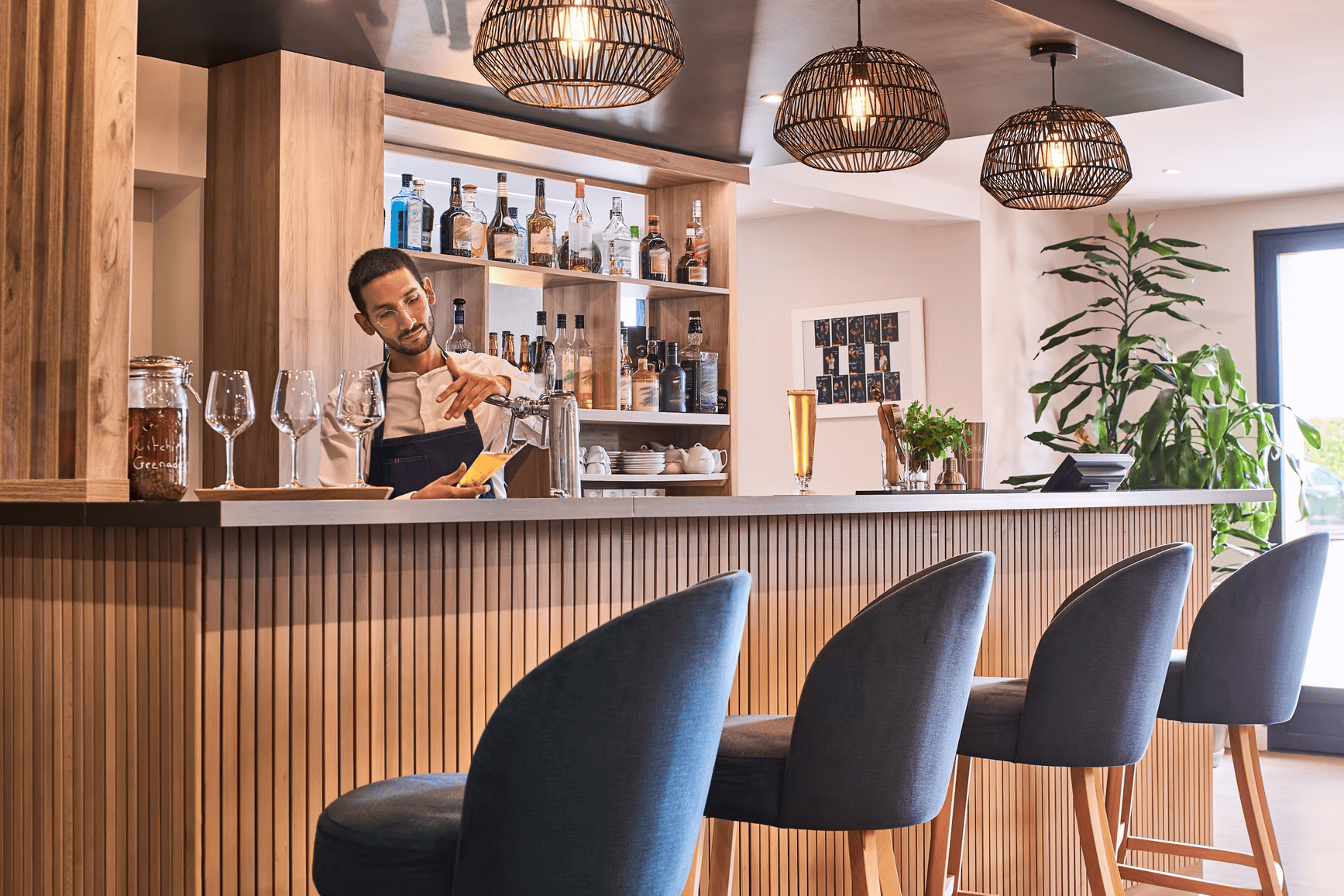 Laissez-vous tenter par l’ambiance cosy et ressourçant de notre bar & lounge tout en sirotant un de nos délicieux cocktails maisons concoctés par notre barman, accompagné d’une savoureuse planche apéritive.