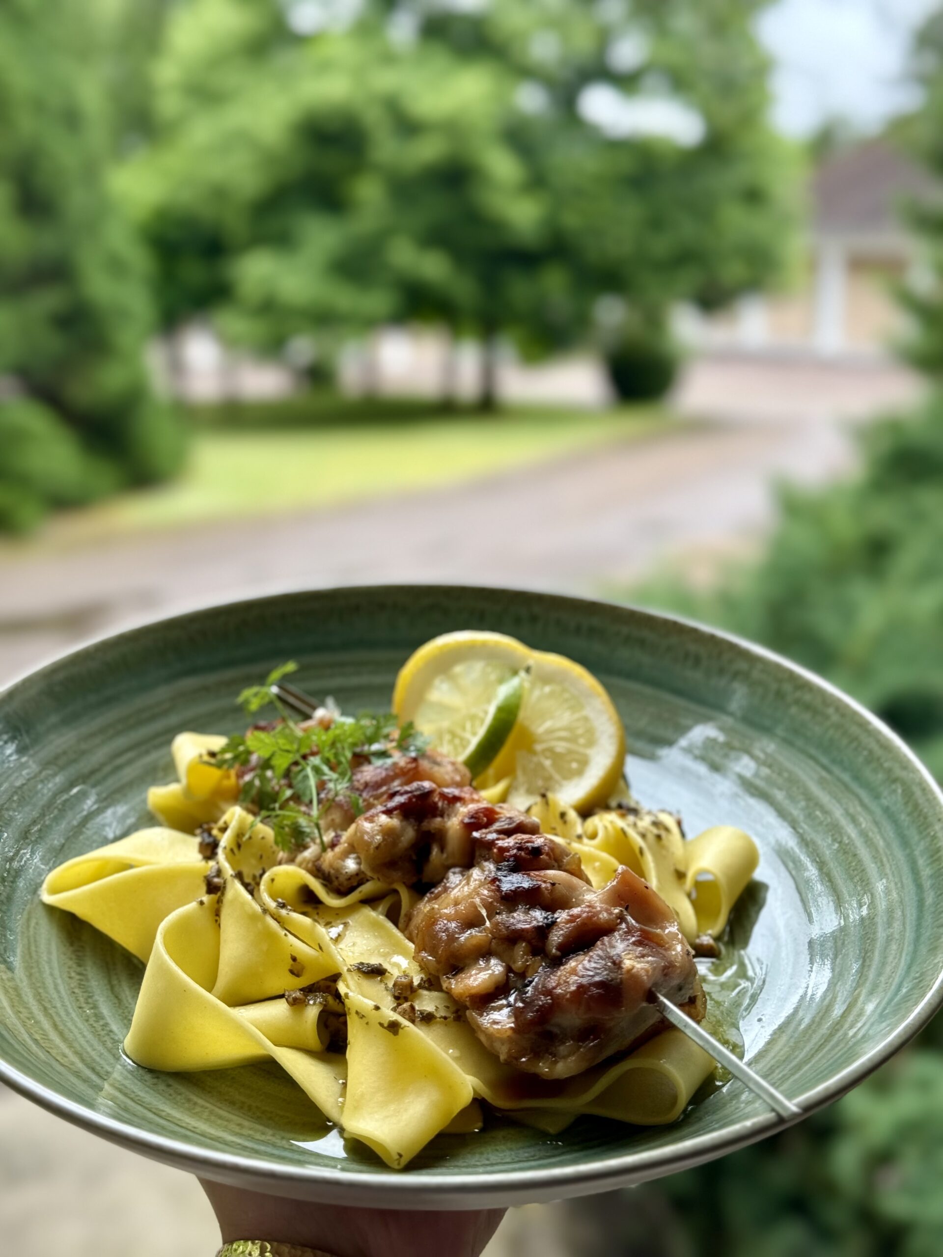 Brochette de bœuf sauce barbecue et pommes au four